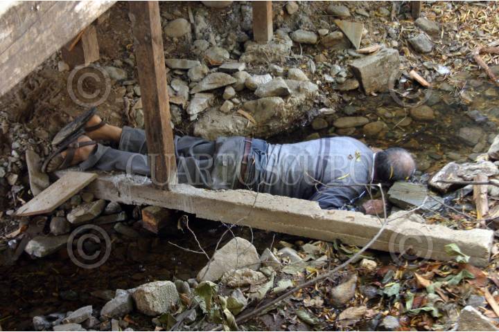 OAXACA, OAXACA, 15ENERO2009.- Un campesino fue hallado muerto debajo de un puente la mañana de este jueves en inmediación de san Felipe del agua, zona residencial al norte de la ciudad, fue descubierto por trabajadores que construyen una casa de lujo en esa zona. FOTO: MAX NÚÑEZ/CUARTOSCURO.COM