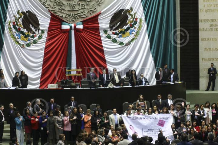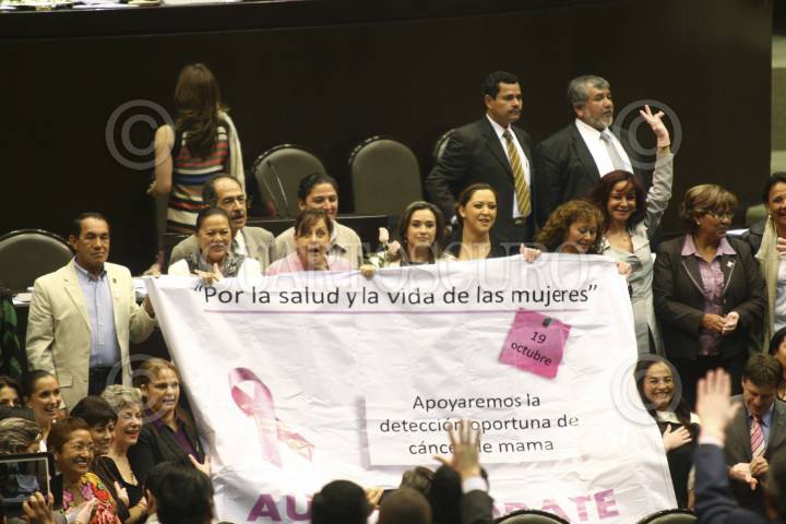 MÉXICO, D.F., 18OCTUBRE2012.- Diputadas de todas los colores partidarios tomaron la tribuna de San Lázaro para concientizar la exploración para la detención oportuna de cáncer de mama. FOTO: IVÁN MENDEZ /CUARTOSCURO.COM