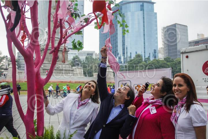 MÉXICO, D.F., 12OCTUBRE2014.- El Instituto de las Mujeres del Distrito Federal encabezó el lanzamiento de la campaña de sensibilización “Árbol Rosa de la Vida” la cual pretende fomentar la detección del cancer de mama entre las mujeres. FOTO: ENRIQUE ORDÓÑEZ /CUARTOSCURO.COM