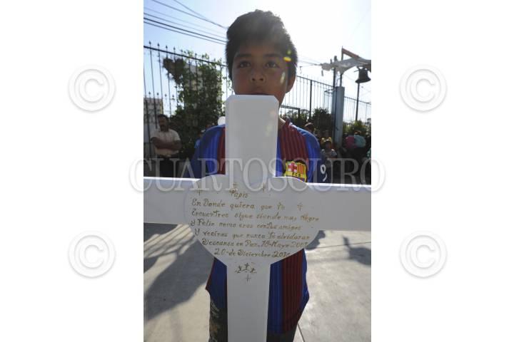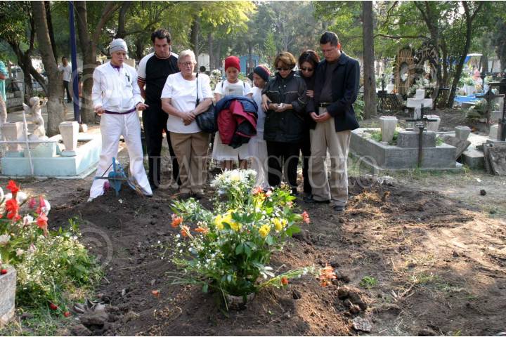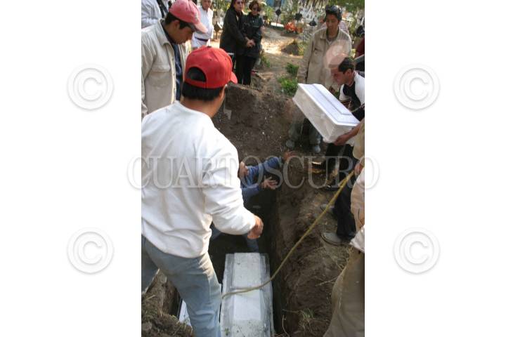 México, D.F. 24DICIEMBRE2003.- Familiares de los niños asesinados en la colonia Obrera y su madre Dulce María García Ortega quién se suicidó arrojándose a las vías del metro Chabacano, les dan el último adios. Esta tarde fueron sepultados en el panteón Santa Lucía. FOTO: Moisés Pablo/CUARTOSCURO.COM