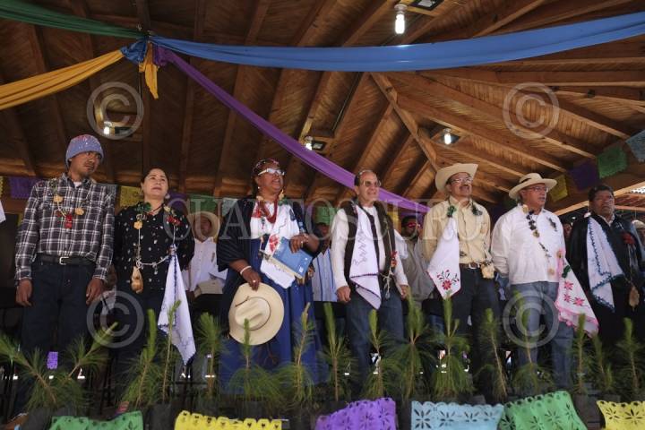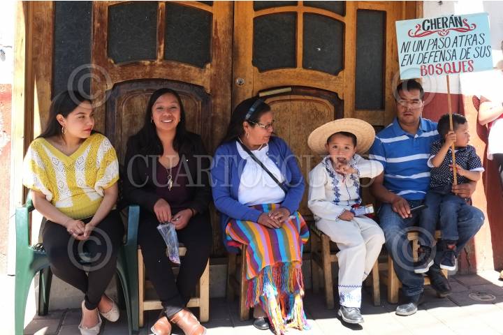 CHERÁN, MICHOACAN, 16ABRIL2018.- En el marco del séptimo aniversario del inicio del levantamiento de Cherán por la defensa de sus bosques. El pueblo ofrece una celebración por los acontecimientos donde invitan a otras comunidades a formar parte por un par de días de la fiesta. Habitantes pertenecientes a los 17 municipios de la Meseta Purépecha como Charapan, Cherán, Los Reyes, Nahuatzen, Nuevo San Juan Parangaricutiro, Parachó, Periban, Tancítaro, Tingambato, Uruapan y Ziracuaretiro, protegen las últimas reservas forestales del estado. FOTO: ANDREA MURCIA /CUARTOSCURO.COM