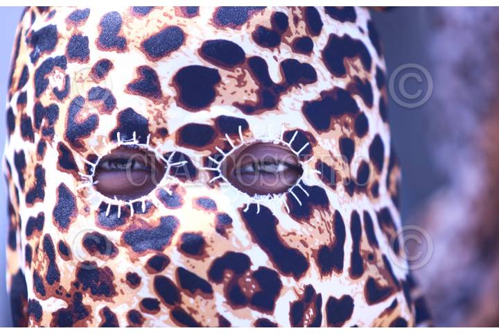 Participante de la danza de los Tecuanes durante el Séptimo Encuentro realizado en la comunidad de Tetelpa, en Zacatepec, Morelos.