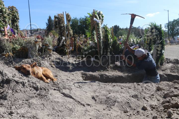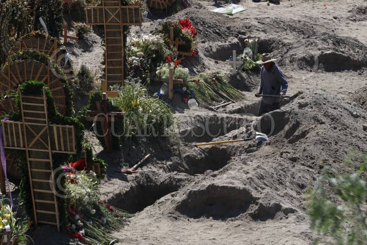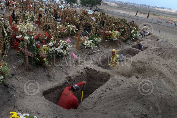 Sepultureros del Panteón Municipal Xico cavan fosas para recibir muertes por causa natural y por Covid-19