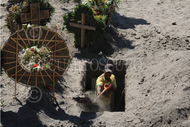 Sepultureros utilizaron traje protector, guantes y cubrebocas como medidas de prevención previo a realizar una inhumación de muerte a causa de Covid-19 en el Panteón San Isidro