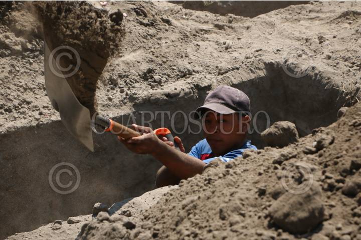 Un sepulturero trabaja en la realización de una fosa en el panteón civil Xico del Valle de Chalco.