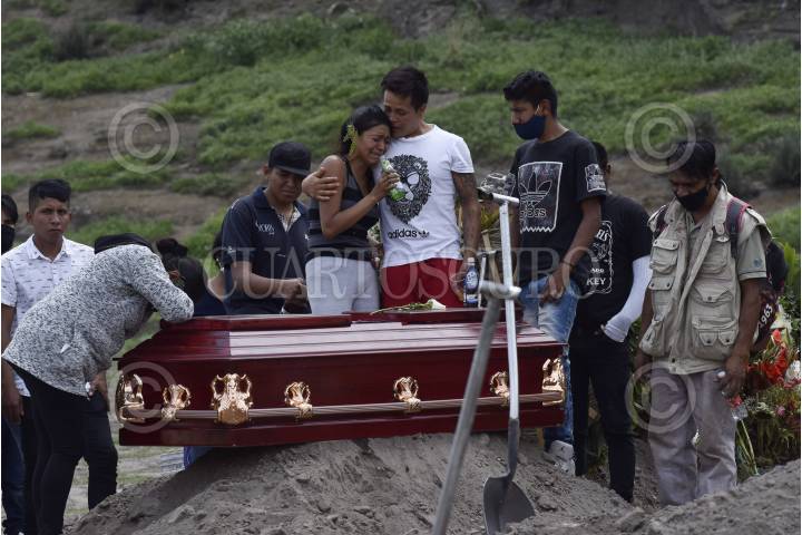 Personas dan el último adiós a su familiar en el panteón civil Xico del Valle de Chalco.