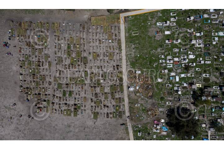 Panorámica aérea del panteón civil "Xico" del Valle de Chalco, en el que se han ocupado más de 400 fosas, que significa aproximadamente entre 20 y 25 por ciento de su totalidad.
