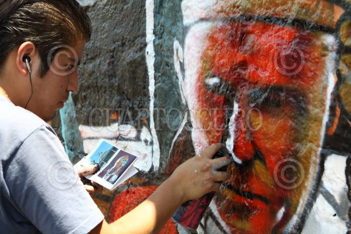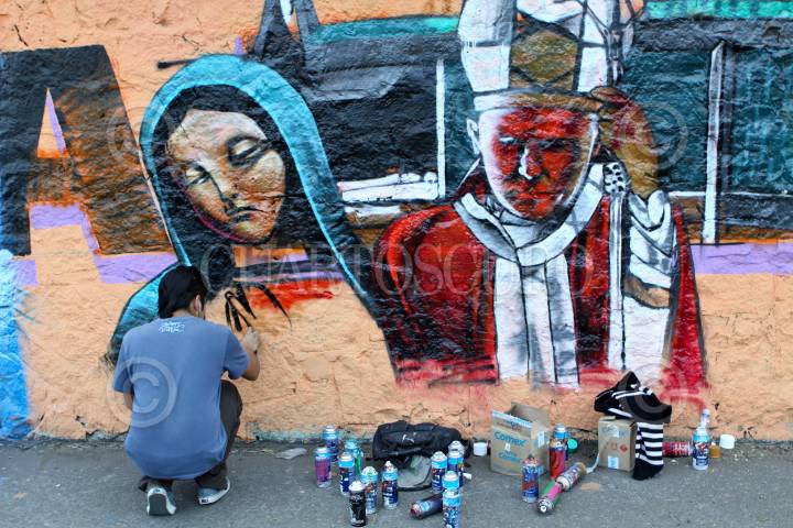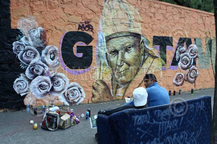 MÉXICO, D.F., 30ABRIL2011.- Un grupo de jóvenes realizo grafitis con la imagen del Papa Juan Pablo II en al atrio de la Basilica de Guadalupe y sobre la avenida Cantera, en este día que el que será beatificado en Roma, Italia. FOTO: RODOLFO ANGULO/CUARTOSCURO.COM