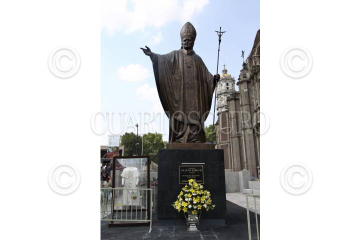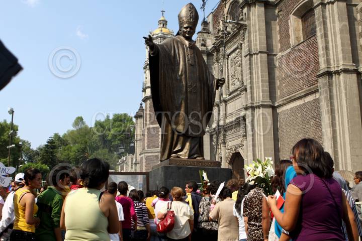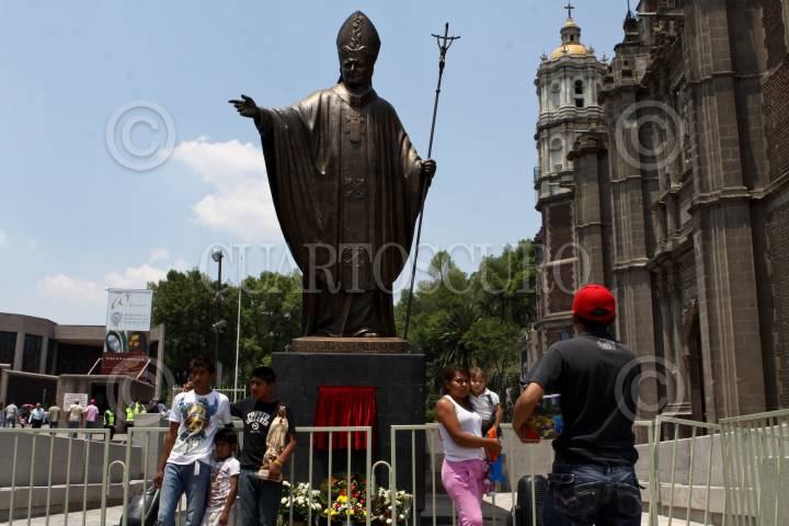 MÉXICO, D.F., 30ABRIL2011.- Cientos de fieles acuden a la estatua del papa Juan Pablo II en la Basilica de Guadalupe, en este día que será beatificado en Roma, Italia. FOTO: RODOLFO ANGULO/CUARTOSCURO.COM