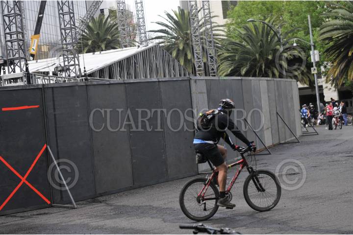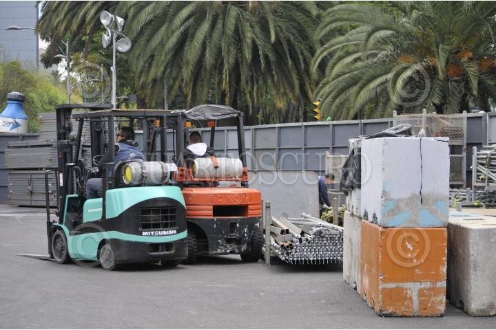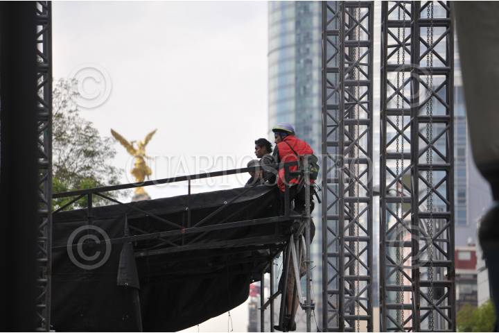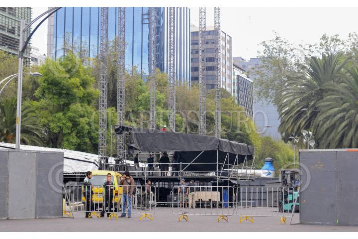 MÉXICO, D.F., 29DICIEMBRE2013.- Trabajadores colocan las estructuras para el escenario que será sede de los festejos de fin de año el próximo 31 de diciembre sobre la Glorieta de la Palma. FOTO: DIEGO SIMÓN SÁNCHEZ /CUARTOSCURO.COM