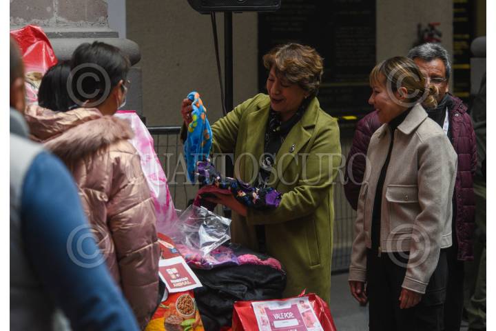 TOLUCA, ESTADO DE MÉXICO, 02ENERO2025.- Delfina Gómez Álvarez, Gobernadora del Estado de México encabezó la entrega de alimento, frazadas y ropa para perros y gatos, en esta segunda entrega se apoyó a 42 Asociaciones Civiles protectoras de seres sintientes, como parte de la coleta “Por los que no tiene voz”. FOTO: CRISANTA ESPINOSA AGUILAR /CUARTOSCURO.COM