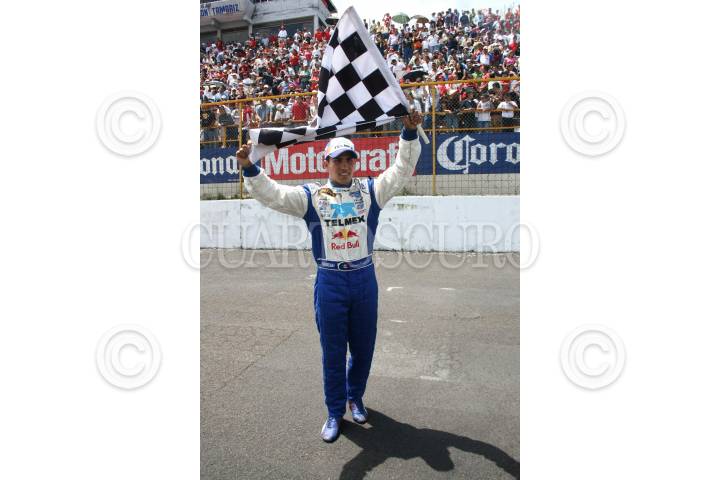 GUADALAJARA, JALISCO., 27JULIO2008.- El tapatio Antonio Pérez cruzo la linea de meta en primera posición por cuarta acasión esto dentro de la 9 fecha del serial Nascar México. FOTO: SÁSHENKA GUTIERREZ/CUARTOSCURO.COM