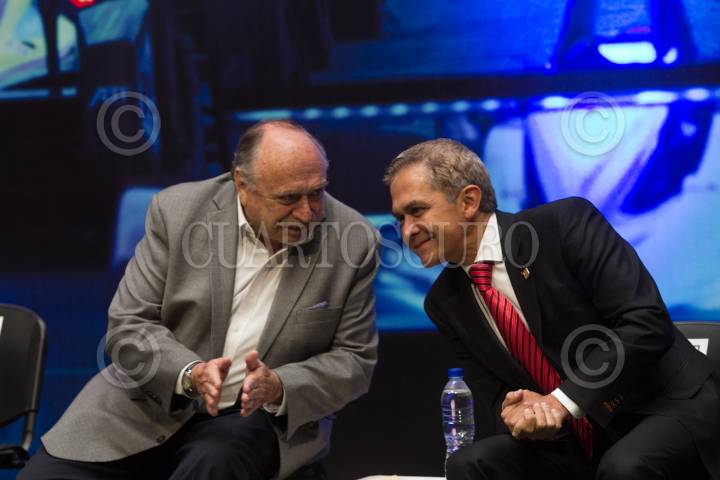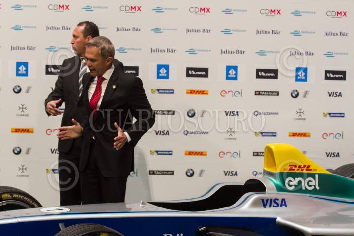 CIUDAD DE MÉXICO, 09ENERO2017.- José Abed, vicepresidente mundial de la Federación Internacional de Automovilismo, y Miguel Ángel Mancera, Jefe de Gobierno, durante la presentación del serial Fórmula E, en el Antiguo Palacio del Ayuntamiento. FOTO: MOISÉS PABLO /CUARTOSCURO.COM