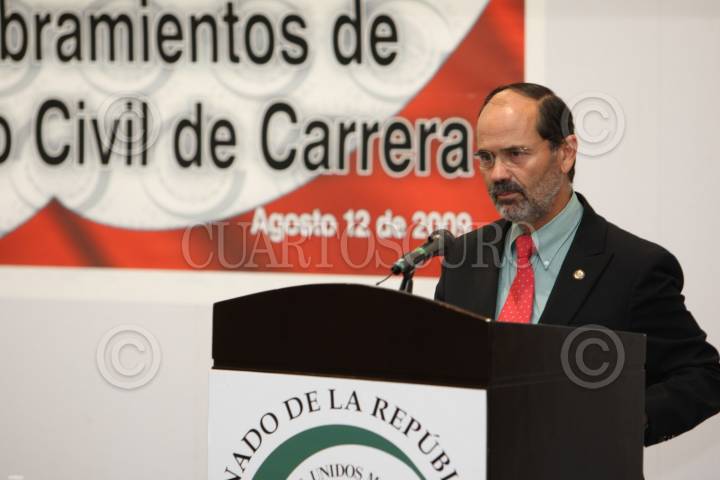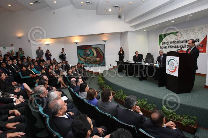 MÉXICO, D.F., 12AGOSTO2009.- Gustavo Madero Muñoz, Presidente de la Comisión Permanente del Congreso de la Unión, entregó nombramientos de ingreso al servicio civil de carrera. FOTO. CUARTOSCURO.COM