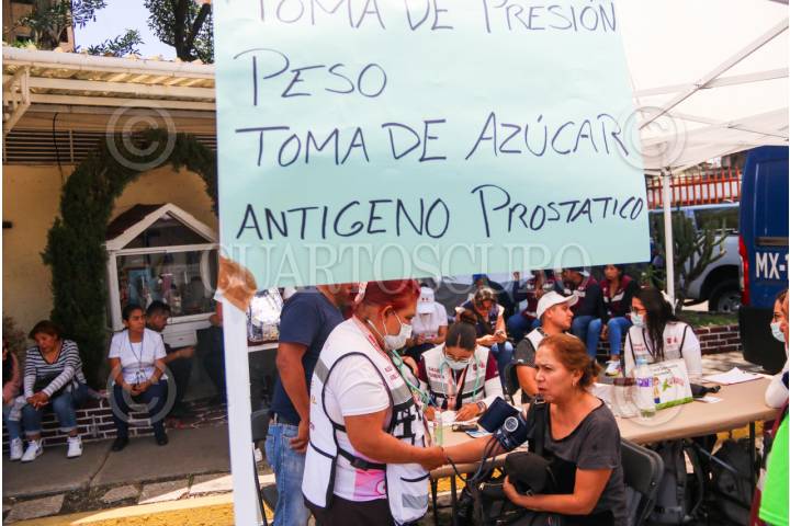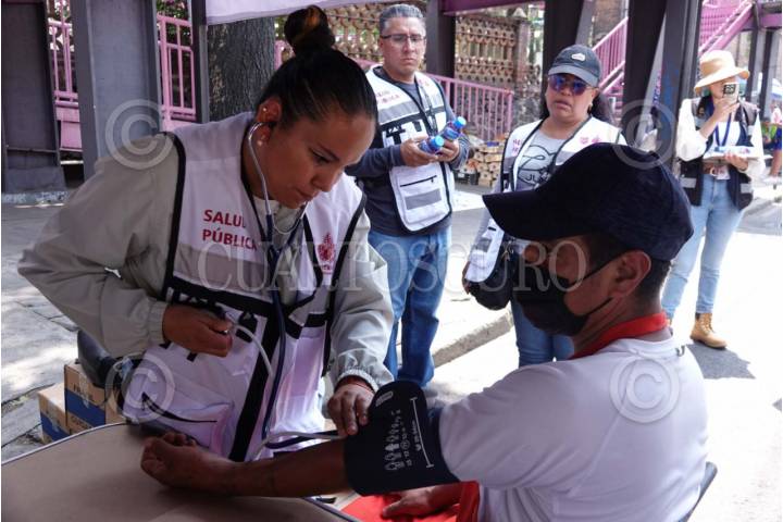 CIUDAD DE MÉXICO, 17ABRIL2025.- En el marco de la celebración de la Semana Santa en la alcaldía Iztapalapa, se colocaron seis módulos de Hidratación y Servicio Médico, en donde los asistentes pueden acudir a la toma de presión y azúcar, así mismo dependiendo del estado de salud, personal médico brinda medicamentos de forma gratuita y si es necesario recetas médicas. El servicio estará abierto al público Jueves y Viernes Santo en un horario de 12 a 18 horas en diferentes puntos alrededor de la explanada de esta demarcación. FOTO: GRACIELA LÓPEZ/CUARTOSCURO.COM
