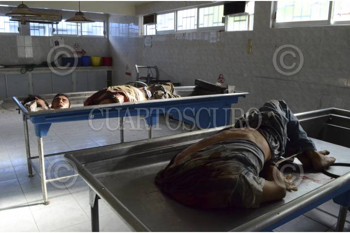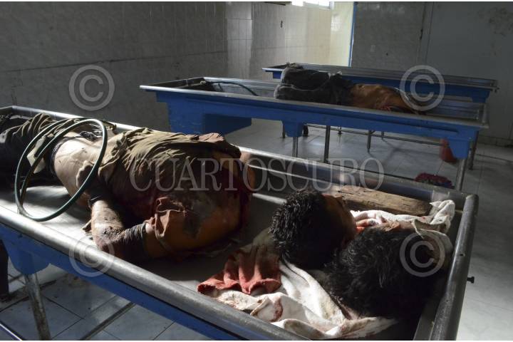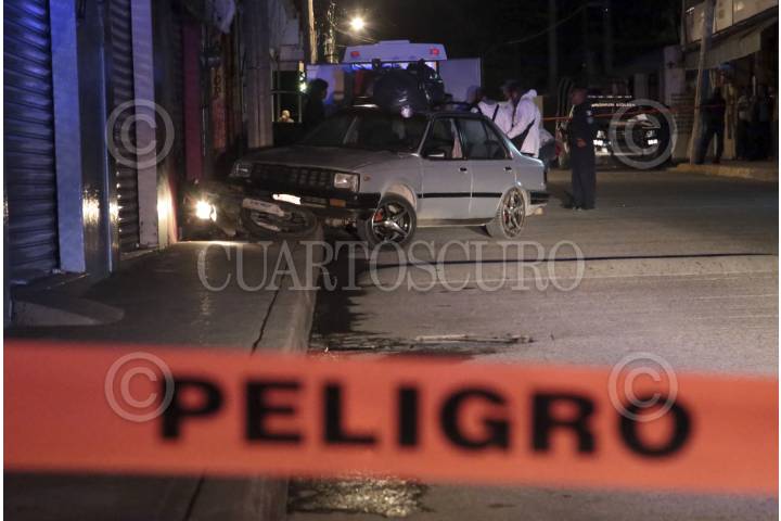 ACAPULCO, GUERRERO, 30JUNIO2012.- Elementos de seguridad municipal reportaron el hallazgo de dos cuerpos de hombres de aproximadamente 20 a 25 años, decapitados en el interior de un taxi azul, en la avenida Solidaridad, a unos metros del monumento al ex gobernador José Francisco Ruiz Massieu, esta mañana. El vehículo fue encontrado alrededor de las 7 horas sobre la avenida Solidaridad, que comunica las avenidas Cuauhtémoc y Ruiz Cortines, a pocos metros de la Unidad Académica de Medicina de la Universidad Autónoma de Guerrero. Los cuerpos pertenecían a los hermanos, Carlos y Miguel Ángel García Vergara. Ambos cadáveres, que presentaban huellas de tortura, fueron trasladados al Servicio Médico Forense por agentes de la Procuraduría General de Justicia del Estado, para efectuar las diligencias de ley. FOTO: BERNANDINO HERNÁNDEZ /CUARTOSCURO.COM