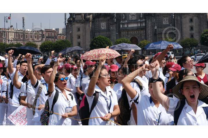 CIUDAD DE MÉXICO, 01AGOSTO2019.- Estudiantes que realizan su Servicio Social en Medicina de la UNAM, el IPN y de la Escuela Nacional de Enfermería y Obstetricia marcharon de Palacio Nacional hacia la Secretaria de Salud para exigir el pago de becas, mejores condiciones en los Centros de Salud y el recorte de presupuesto hacia los pasantes de Medicina. FOTO: GRACIELA LÓPEZ /CUARTOSCURO.COM