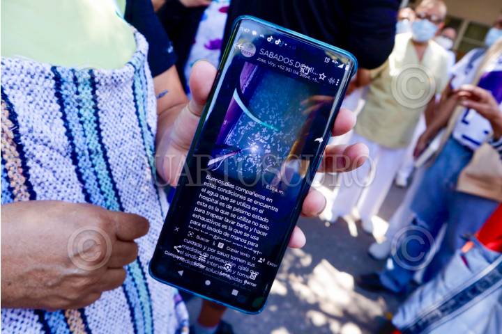 OAXACA DE JUÁREZ, OAXACA, 10MARZO2024.- Derechohabientes y personal médico del Hospital Regional “Presidente Juárez” del Instituto de Seguridad y Servicios Sociales de los Trabajadores del Estado (ISSSTE) ubicado en la capital de Oaxaca, se manifestaron por falta de agua potable en las instalaciones médicas, lo que impide la atención adecuada de pacientes. Los inconformes acusaron que ni los baños cuentan con agua lo que representa un foco de infección; además el personal médico dijo que no se tiene agua para lavarse las manos, por lo que desde hace días la administración emitió un comunicado sobre medidas para mitigar el nulo abasto de agua, sin embargo no les han dicho cuándo se contará con suministro. FOTO: CAROLINA JIMÉNEZ/CUARTOSCURO.COM