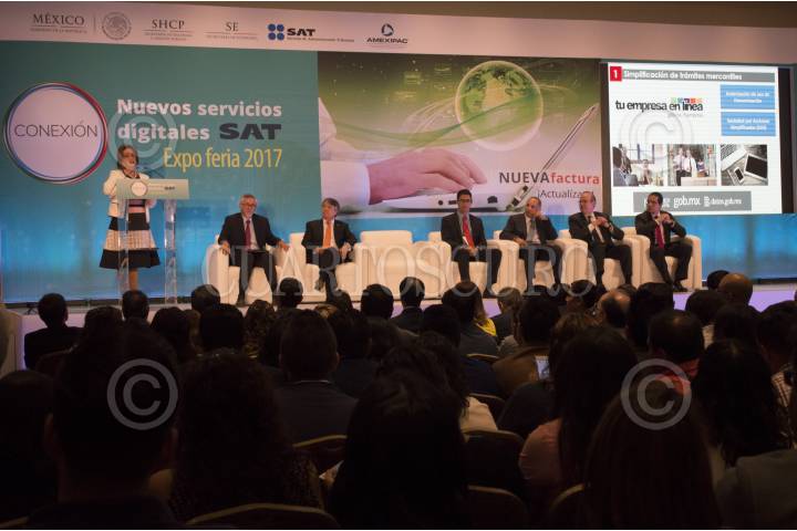CIUDAD DE MÉXICO, 14JUNIO2017.- Osvaldo Santín Quiroz, jefe de Servicios de Administración Tributaria (SAT), presidio la inauguración de la "Expo Feria Nuevos Servicios Digitales, Foro Conexión 2017", en la que se presentarán los servicios y actualizaciones que ofrece el SAT para las pequeñas y medianas empresas con la finalidad de agilizar el proceso de pago de impuestos. FOTO: SELENE PACHECO /CUARTOSCURO.COM