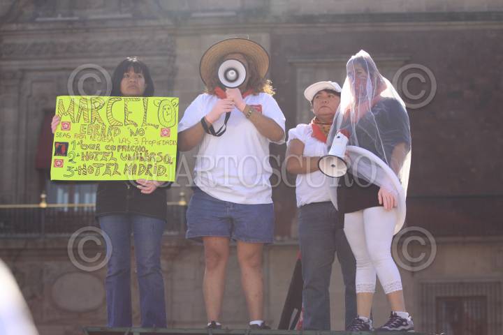 MÉXICO, D.F., 01MAYO2009.- Siendo hoy día del trabajo una decena de sexo servidoras se manifestarson frente a Palacio Nacional donde se manisfestaron en contra de las autoridades, a las cuales les exigieron respeto y ya no mas violencia FOTO: SÁSHENKA GUTIÉRREZ/CUARTOSCURO.COM