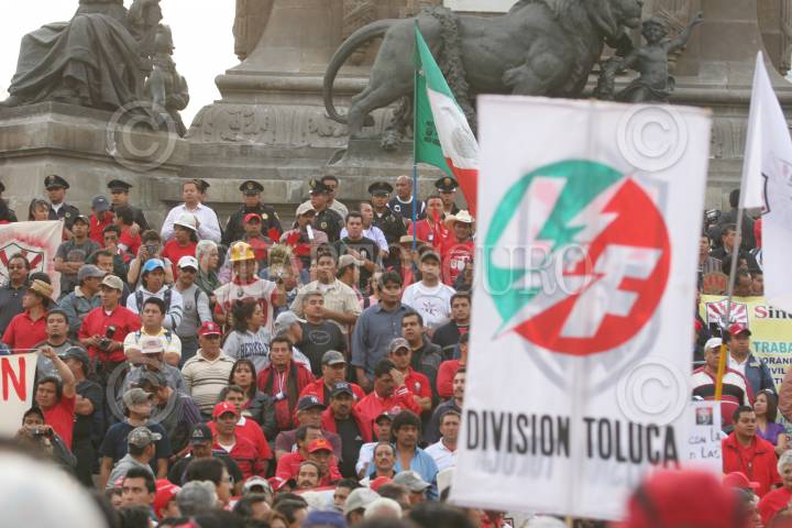 MÉXICO, D.F., 19NOVIEMBRE2010.- Integrantes del Sindicato Mexicano de Electricistas, se manifestaron en las inmediaciones del Angel de la Independencia, en el acto participaron como oradores representantes de la Coordinadora Nacional de Trabajadores de la Educación, así como de sindicatos de la UNAM y Telefonistas. FOTO: SAÚL LÓPEZ/CUARTOSCURO.COM