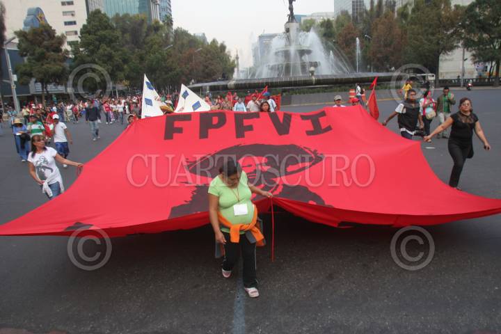 MÉXICO, D.F., 19NOVIEMBRE2010.- Integrantes del Frente Popular Francisco Villa, Frente de Pueblos en Defensa de la Tierra, sexoservidoras e integrantes de organizaciones civiles marcharon sobre el Paseo de la Reforma hacia la Presidencia de la República, bloqueando por mas de 3 horas la avenida Reforma a la Altura de Chivatito. FOTO: SAÚL LÓPEZ/CUARTOSCURO.COM