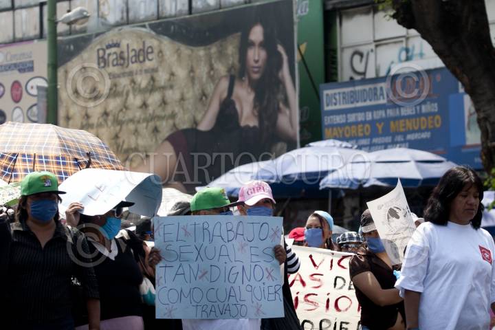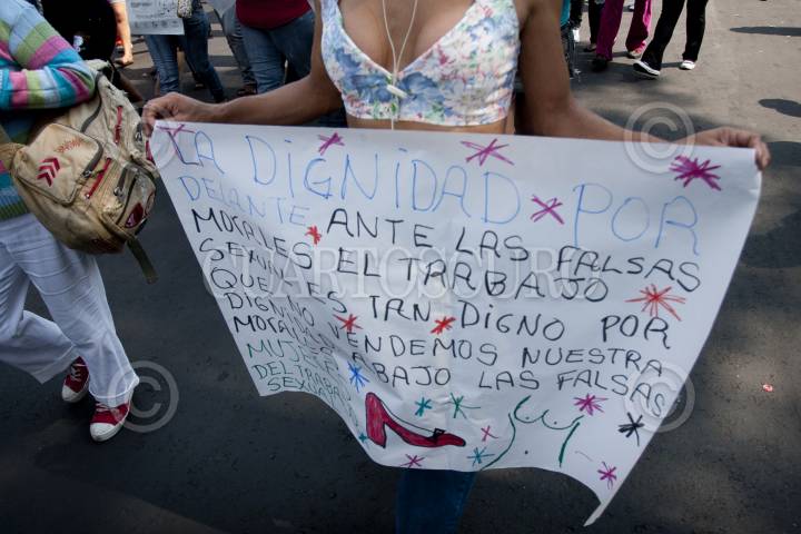 MÉXICO D.F., 01MAYO2011.- Decenas de sexoservidoras, como una forma de celebrara el Día Internacional del Trabajo, marcharon por la avenida de circunvalación con carteles lanzando consignas como “La esquina es de quien la trabaja” para protestar y exigir respeto a su trabajo por parte del gobierno capitalino, . FOTO: GUILLLERMO PEREA/CUARTOSCURO.COM