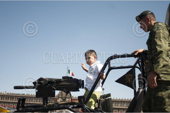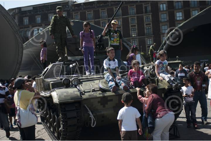 MÉXICO, D.F., 09FEBRERO2014.- La exposición militar "Fuerzas Armadas…Pasión por servir a México" se presentó por segunda ocasión en el zócalo capitalino donde los visitantes pueden observar una muestra de los equipos y labores castrenses. Además hay actividades para que los niños convivan con militares. FOTO: IVÁN STEPHENS /CUARTOSCURO.COM