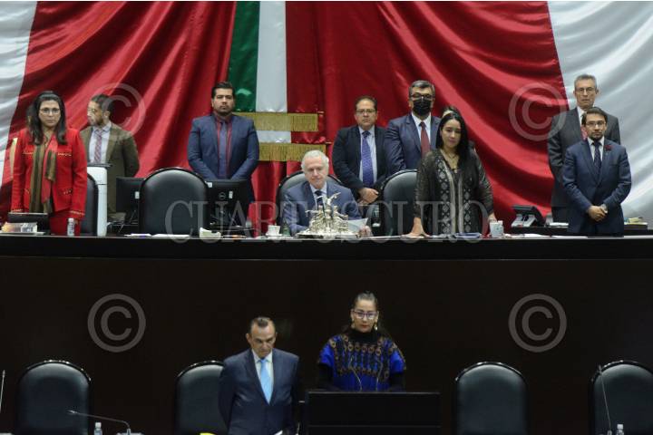 CIUDAD DE MÉXICO, 09SEPTIEMBRE2025.- Minuto de Silencio en el pleno en honor a la legisladora priista Azucena Guadalupe Guerrero durante la Sesión Ordinaria del Segundo Año de ejercicio de la LXVI Legislatura en la Cámara de Diputados en la que se aprobó la iniciativa de Ley contra la Extorsión. FOTO: GALO CAÑAS/CUARTOSCURO.COM