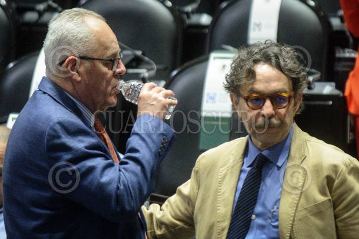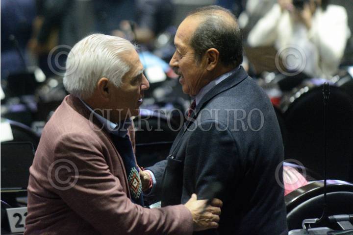 Héctor Ireneo Mares, y Leonel Godoy, diputados de Morena, durante la sesión ordinaria de la Cámara de Diputados.
