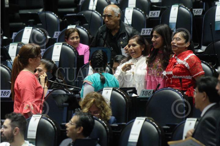Diputadas de Morena, durante la sesión ordinaria de la Cámara de Diputados.