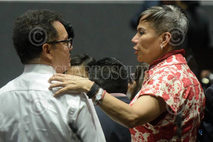 CIUDAD DE MÉXICO, 09SEPTIEMBRE2025.- La morenista Olga Sánchez Cordero conversa con el panista Federico Döring durante la Sesión Ordinaria del Segundo Año de ejercicio de la LXVI Legislatura en la Cámara de Diputados en la que se aprobó la iniciativa de Ley contra la Extorsión. FOTO: GALO CAÑAS/CUARTOSCURO.COM