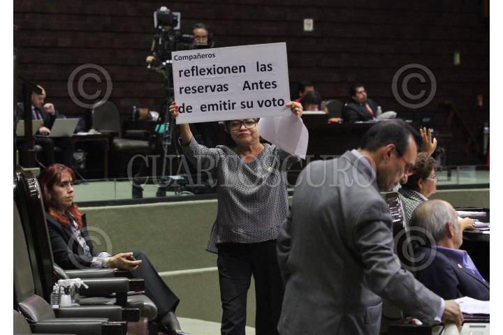 CIUDAD DE MÉXICO, 16JUNIO2016.- En la imagen, la diputada de Morena, Margarita Cuata sostiene una pancarta. Diputados votaron a favor de la Ley 3 de 3 en lo general mientras continúan sesionando en la Cámara de Diputados en donde discuten en torno al Proyecto de a Decreto del Código Penal Federal en materia de Anticorrupción. FOTO: MARÍA JOSÉ MARTÍNEZ /CUARTOSCURO.COM