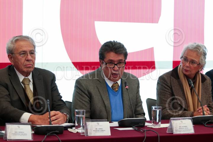 Mónica Fernández, presidenta del Senado; Jorge Alcocer, secretario de Salud; Ricardo Monreal, presidente de la Junta de Coordinación Política (JUCOPO), y Olga Sánchez Cordero, secretaria de Gobernación, durante la sesión.