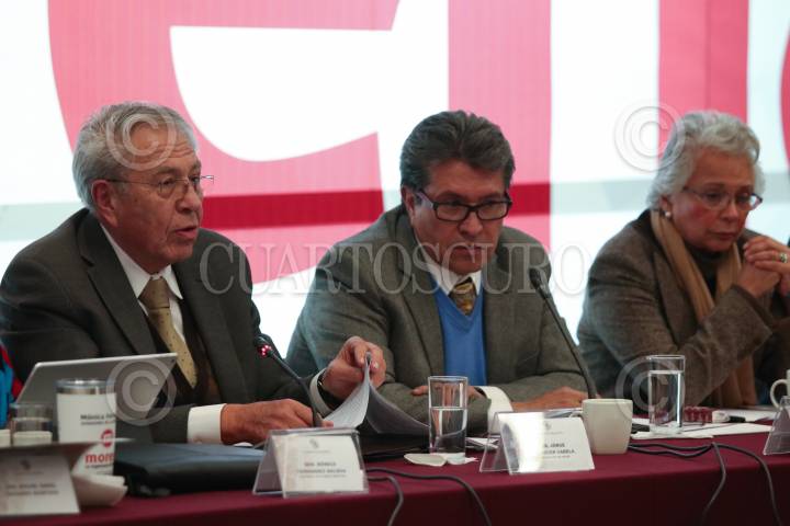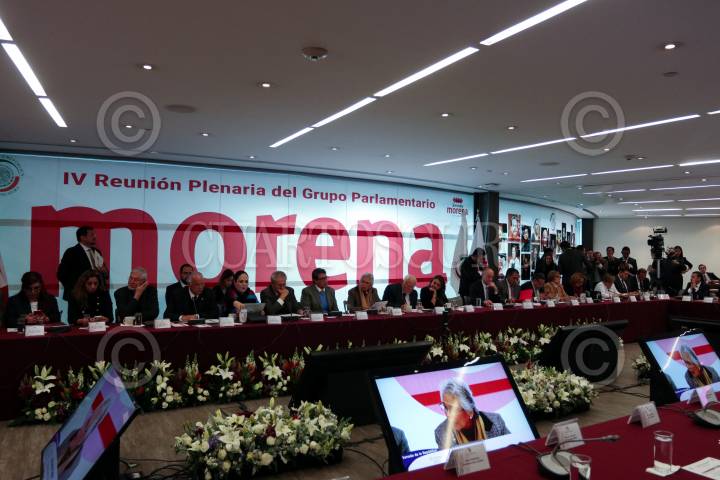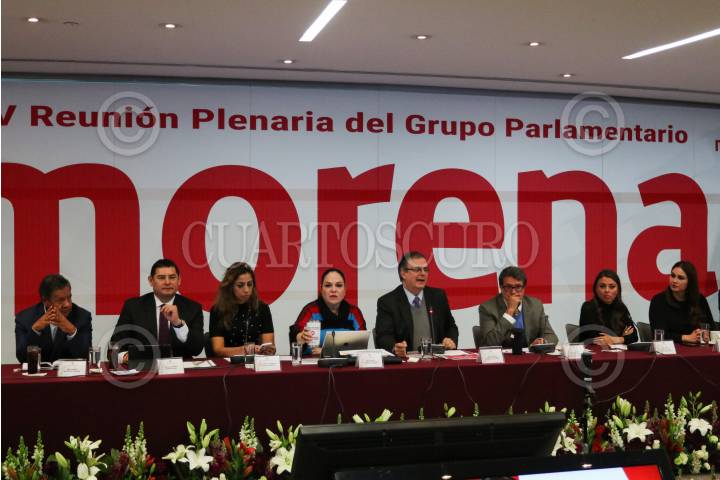 Aspectos de la mesa de trabajo de la Reunión Plenaria de Morena con el canciller Marcelo Ebrard.