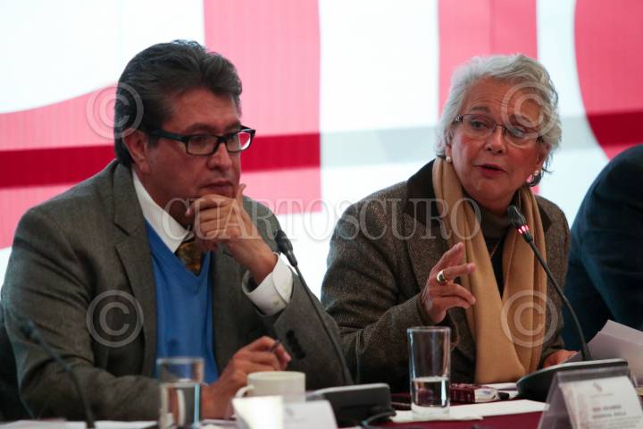 Ricardo Monreal, presidente de la Junta de Coordinación Política (JUCOPO), y Olga Sánchez Cordero, secretaria de Gobernación, durante de la sesión.