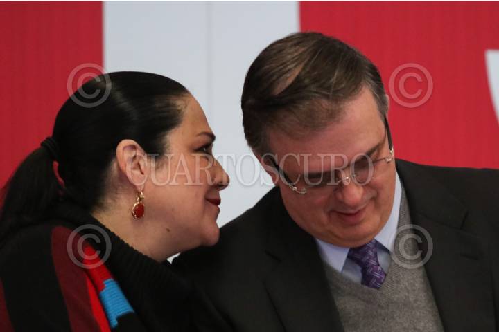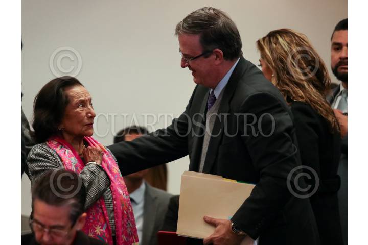 Ifigenia Martínez, senadora morenista, saluda al canciller Marcelo Ebrard.