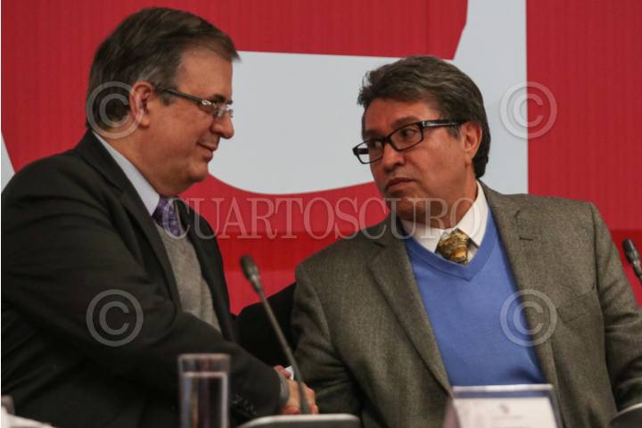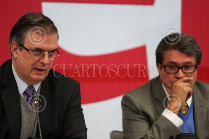 Marcelo Ebrard, secretario de Relaciones Exteriores, y Ricardo Monreal, presidente de la Junta de Coordinación Política (JUCOPO), durante la reunión plenaria.
