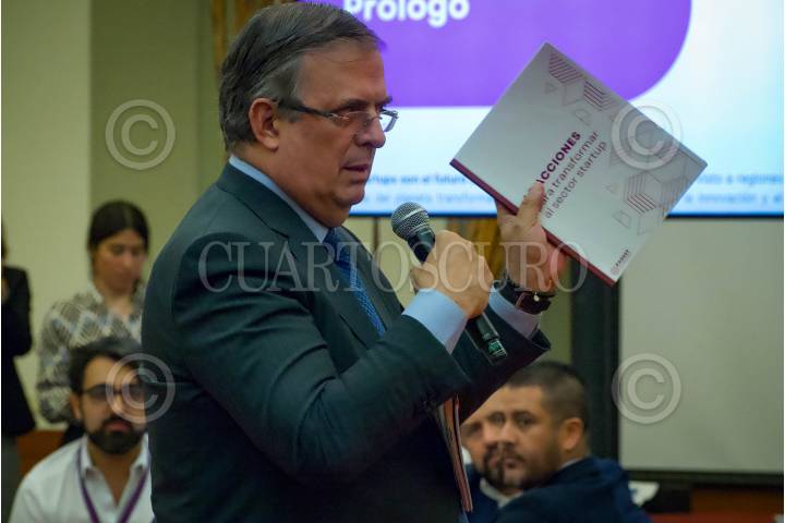 Marcelo Ebrard durante la Sesión Plenaria, ¿Cómo impulsar al sector startup en México? en la SRE.