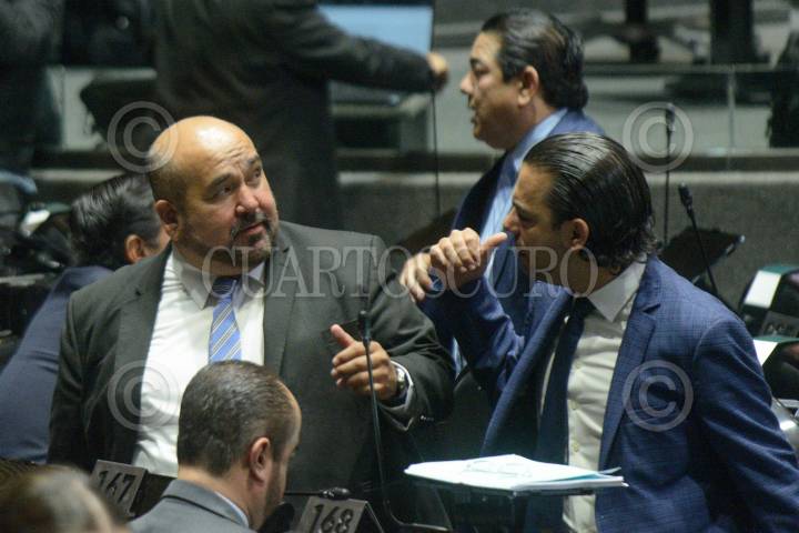 Héctor Ireneo Mares, y Leonel Godoy, diputados de Morena, durante la sesión ordinaria de la Cámara de Diputados.