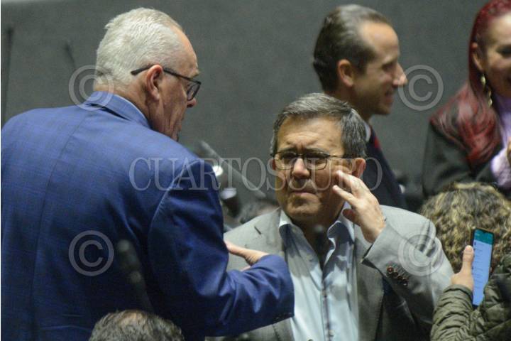 Arturo Espadas, diputado del PAN, y Leonel Godoy, diputado de Morena, durante la sesión ordinaria de la Cámara de Diputados.