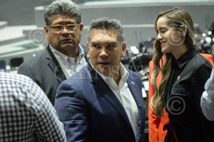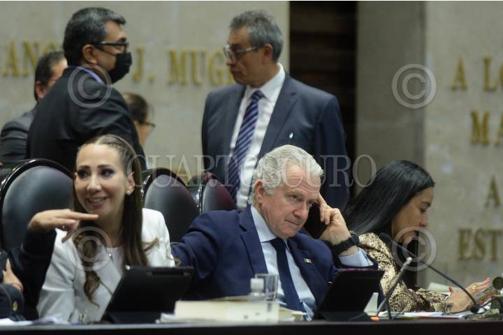 Santiago Creel, presidente de la mesa directiva, junto a las secretarias: Marcela Guerra Castillo y Karla Yuritzi Almazán, durante la sesión ordinaria de la Cámara de Diputados.