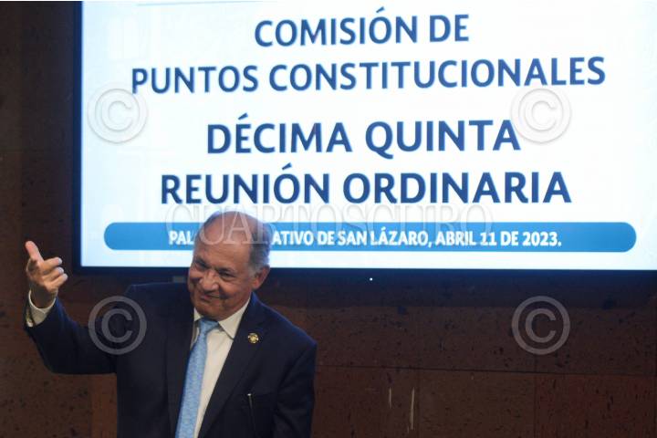 Juan Ramiro Robledo, diputado de Morena y presidente de la Comisión de Puntos Constitucionales, e integrantes de dicha comisión, reanudaron la décima quinta reunión ordinaria en la que derivado de falta de acuerdos se pospone la discusión del dictamen que que busca limitar al TEPJF.