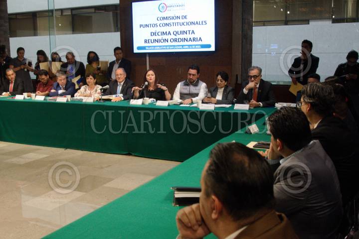 Lidia García Anaya, diputada de Morena; Juan Ramiro Robledo, diputado de Morena y presidente de la Comisión de Puntos Constitucionales; Susana Prieto Terrazas, diputada de Morena, e integrantes de dicha comisión, reanudaron la décima quinta reunión ordinaria en la que derivado de falta de acuerdos se pospone la discusión del dictamen que que busca limitar al TEPJF.