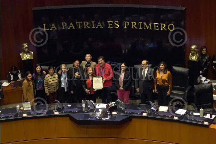 CIUDAD DE MÉXICO, 13NOVIEMBRE2024.- Gerardo Fernández Noroña, acompañado de Mesa Directiva del Senado, durante la entrega de constancia a Rosario Piedra Ibarra, como titular de la Comisión Nacional de los Derechos Humanos, quien fuera reelegida para este cargo, esto durante la Sesión de la Cámara de Senadores. FOTO: ROGELIO MORALES /CUARTOSCURO.COM