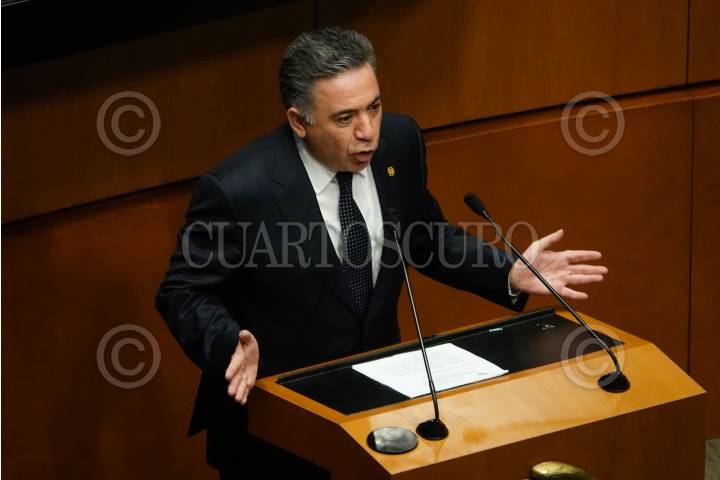 CIUDAD DE MÉXICO, 03DICIEMBRE2024.- El senador morenista Cuauhtémoc Ochoa Fernández hace uso de la tribuna durante la discusión de la Ley de Derechos y Ley de Ingresos ante el pleno del Senado de la República. FOTO: GALO CAÑAS/CUARTOSCURO.COM