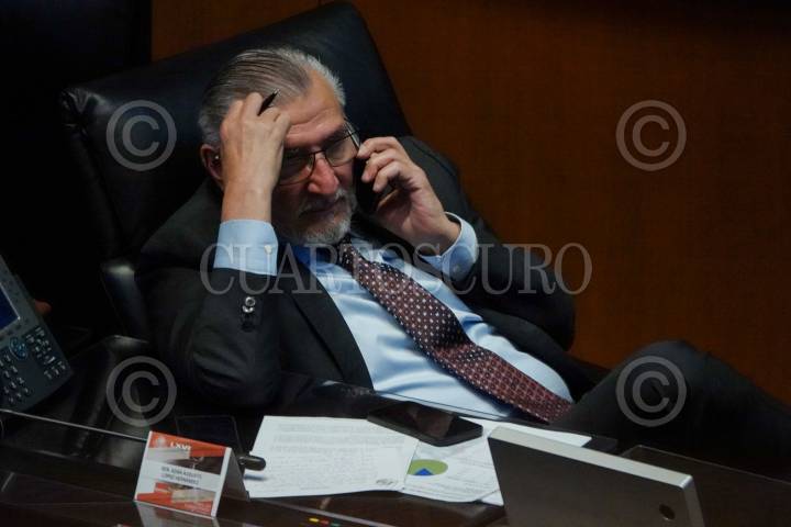 CIUDAD DE MÉXICO, 13FEBRERO2025.- El coordinador morenista Adán Augusto López durante la sesión vespertina en al que se discute la aprobación de la Ley Infonavit ante el pleno del Senado del República. FOTO: GALO CAÑAS/CUARTOSCURO.COM