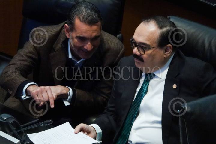 CIUDAD DE MÉXICO, 13FEBRERO2025.- Luis Armando Melgar, presidente de la Comisión de Reordenamiento y Vivienda, y lo senadores del PVEM Luis Silva y Manuel Velasco Coello (coordinador) durante la sesión vespertina en la que se aprobó en lo general la Ley Infonavit ante el pleno del Senado del República. FOTO: GALO CAÑAS/CUARTOSCURO.COM