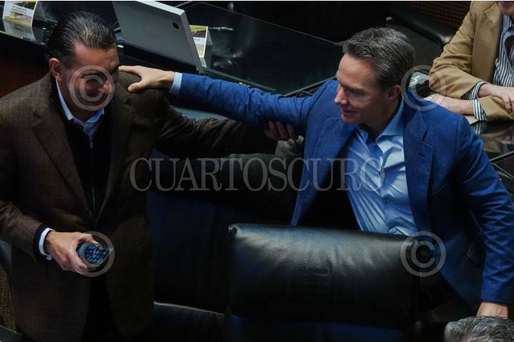 CIUDAD DE MÉXICO, 13FEBRERO2025.- Luis Armando Melgar, presidente de la Comisión de Reordenamiento y Vivienda, salud al coordinador del PVEM, Manuel Velasco Coello, durante la sesión vespertina en al que se discute la aprobación de la Ley Infonavit ante el pleno del Senado del República. FOTO: GALO CAÑAS/CUARTOSCURO.COM