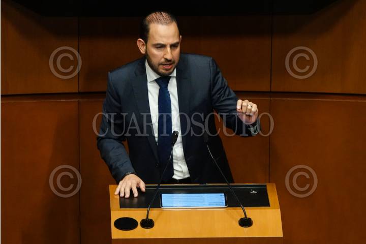 CIUDAD DE MÉXICO, 13FEBRERO2025.- El senador panista Marko Cortés durante la sesión vespertina en al que se discute la aprobación de la Ley Infonavit ante el pleno del Senado del República. FOTO: GALO CAÑAS/CUARTOSCURO.COM